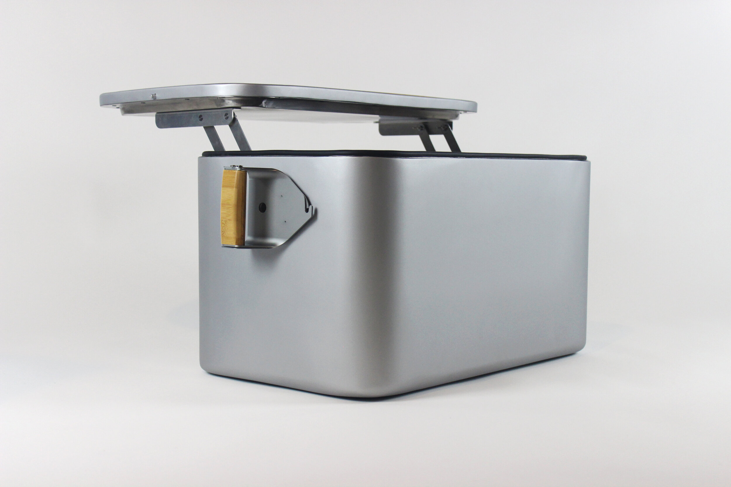 We hope that everything mentioned above in combination with a sleek modern design will give owners a sense of pride in their Wooly cooler. The all-metal construction harkens back to metal ice chests during the golden era of camping, while the cutting board, tacklebox-style hinges and variety of finish options bring it into the 21st century.
